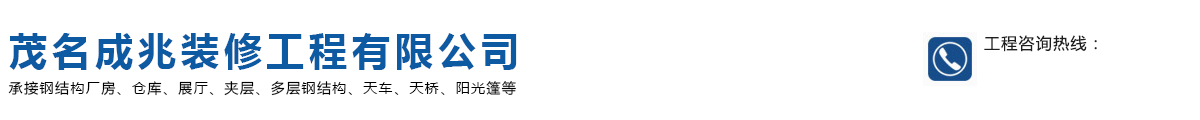 茂名成兆裝修工程有限公司具有鋼結(jié)構(gòu)制造和鋼結(jié)構(gòu)安裝的專業(yè)公司。從事鋼結(jié)構(gòu)工程的設(shè)計(jì)、制造、安裝施 工及鋼結(jié)構(gòu)材料的銷售。主要承接鋼結(jié)構(gòu)廠房、倉(cāng)庫(kù)、展廳、夾層、多層鋼結(jié)構(gòu)、天車、天橋、陽光篷等鋼結(jié) 構(gòu)工程;配套土建、水電安裝、廠房改造、維修等工程項(xiàng)目。